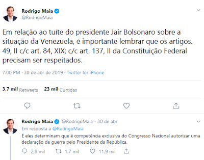 Só que não, como tratou de corrigir o presidente da Câmara Rodrigo Maia, também pelo Twitter.