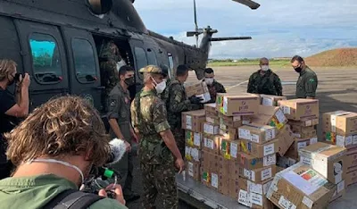 Retirada do protocolo de tratamento da COVID-19 em todo o mundo por sua ineficácia, a cloroquina está sendo distribuída para tratamento dos Yanomami em Roraima, em mais uma intervenção genocida de Bolsonaro. O Exército descarregou 13,5 mil comprimidos de cloroquina esta semana.