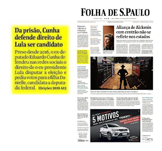 Em vez disso, a Folha preferiu Cunha para manter a pressão sobre o STF, pressão a que se juntou o comandante do Exército na época, general Villas Bôas, e que acabou impedindo a candidatura de Lula pelo STF.